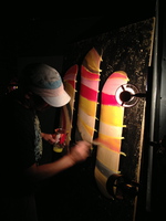 ムラサキスポーツ秋田店15周年イベントにてDKCによるLive Paintがおこなわれました。今回は3枚のスケートデッキにPaintし、2本はイベント中にプレゼント。もう1本は秋田店に飾るとのことです。